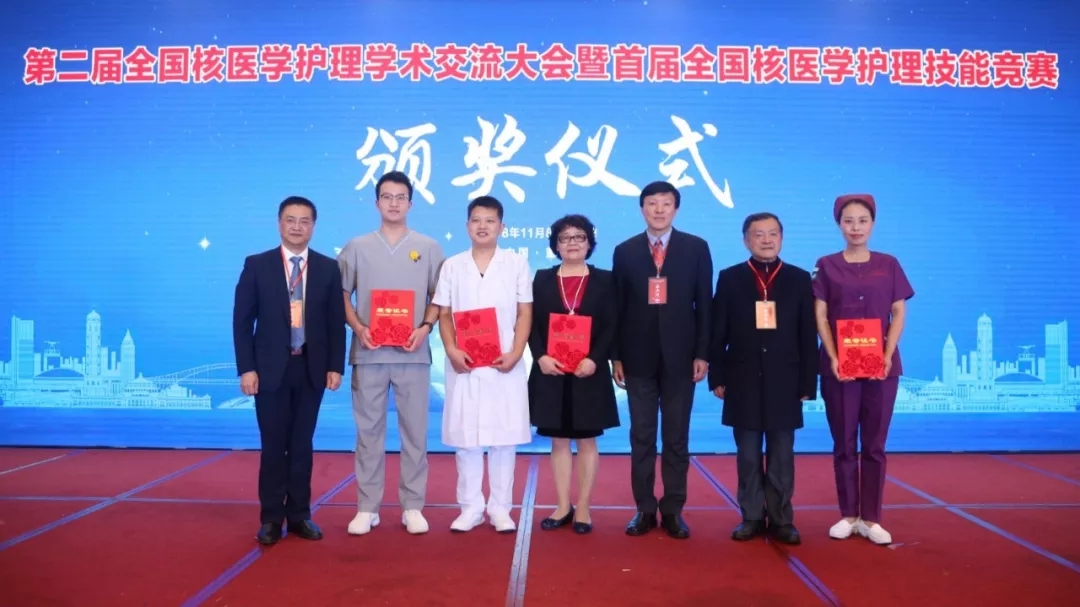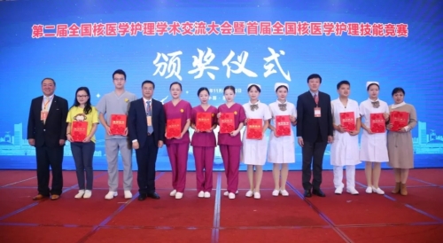08:30,首届全国核医学护理技能竞赛颁奖仪式开始,荣获优秀奖的代表队有:北京、四川、贵州、浙江、广东、内蒙古自治区、辽宁代表队,颁奖嘉宾为张凯秀、马婷副主委;荣获三等奖的代表队有广西、山西、安徽、湖南代表队,颁奖嘉宾为庞华、敬兴果、莫逸、张青教授;荣获二等奖的代表队有福建、江苏、湖北代表队,颁奖嘉宾为赵庆华、王爱平、谭建教授;荣获一等奖的代表队有河南、上海代表队,颁奖嘉宾为李亚明主委、肖明朝院长;获得最佳团队合作奖的是江苏代表队,最佳情景设计奖是上海代表队,最佳操作能手奖是河南队的陈战磊,最美护士奖是上海代表队的崔宇航,颁奖嘉宾为李少林教授、李亚明主委、肖明朝院长。