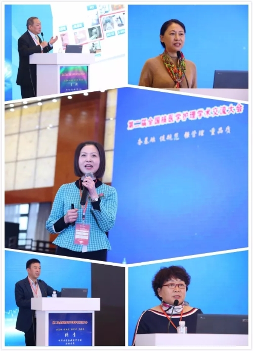 09:10,主题报告开始,赵庆华、王爱平、王辉、张青、张凯秀分别以“对品质护理的理解、护理科研选题的思路及方法、核医学新进展、放射性粒子组织间近距离治疗肿瘤的护理、护理与辐射实践安全”为题为大家做了专题讲座。专题报告由李亚明、马婷、贾启英主持。赵庆华主任评价本次大会有“三新、三好”,并分别就护理品质的提升、行业发展变化、关注患者体验、质量评价新视角、医院管理新思考、新时代医疗服务模式变化等方面做了高层次、高视角的阐述。王爱平指出护理学科迎来新机遇、新挑战,护士研究者角色更加凸显,并在选题的注意事项、如何查阅文献、研究问题的确定等方面给大家提出了很好的建议。王辉就分子影像新进展、核医学影像设备进展、放射性药物进展给大家做了全方位的介绍,还就PMSA 分子显像、Tau蛋白定量等的研究进展给大家展示了精彩的图片,同时指出诊疗一体化的精准诊断和高效治疗是现代医学的研究热点。张青就粒子植入的3年前概况、现在的状况、相关规章制度、工作流程、具体操作要点及如何正确适度的放射性防护给大家做了详细而深入的介绍。张凯秀就核医学护理工作职责、管理工作、机遇和挑战、质控框架管理职责、辐射实践安全管理等给大家做了精彩阐述,并指出核医学护士要勇于担当、了解患者需求。