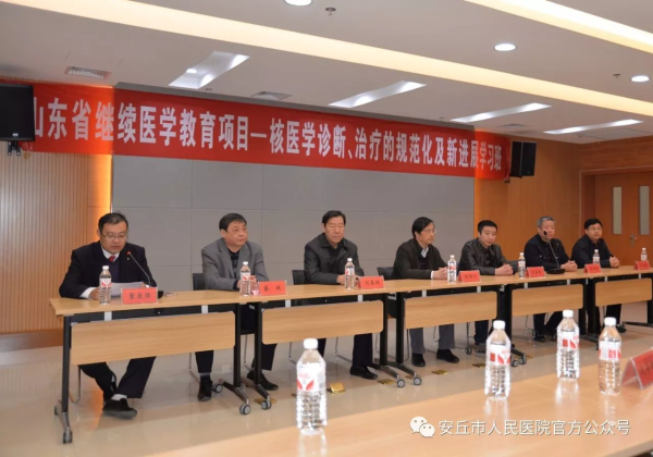 山东省肿瘤医院核医学科主任、山东省医学会核医学专科分会主任委员杨国仁教授,烟台毓璜顶医院核医学科主任、山东省医学会核医学专科分会副主任委员李善春教授,潍坊市人民医院核医学科主任、山东省医学会核医学专科分会副主任委员李凤岐教授,潍坊医学院附属医院核医学科刘志翔主任,潍坊市人民医院核医学科李现军副主任代学之副主任,安丘市人民医院副院长蔡波,安丘市人民医院核医学科主任董爱强,出席了会议。