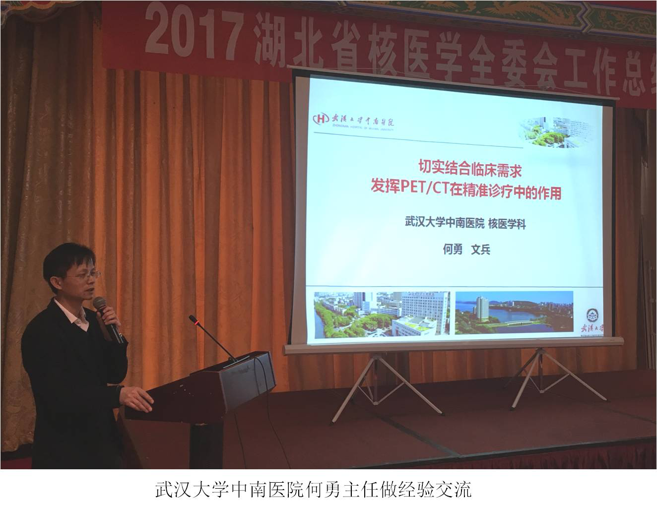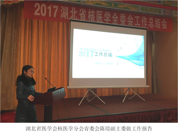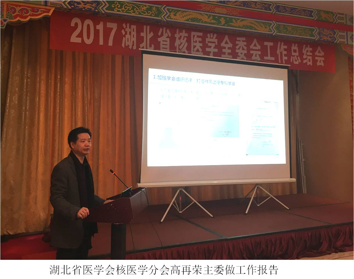 二、省医学会核医学分会主任委员,高再荣教授总结2017年省核医学分会工作并规划2018年工作。2017年,湖北省核医学在学会建设、学科发展、临床工作、人才培养、科研教学及学术交流等方面均取了丰硕的成绩,并对取得进步的多家单位提出了表扬。2017年我省新增1台PET/CT、2台SPECT,另有2台PET/CT和2台SPECT进入安装阶段,多家医院开展125I粒子植入治疗并新增体外分析检测项目,核素治疗日趋规范。2017年,在学会的指导下,核医学分会成功举办省年会、2次季度学术交流、首届湖北省核医学读片比赛、五次全国性学术专题论坛、数项国家级、省市级继续教育项目,获得国家自然基金面上项目两项、青年项目一项、数字诊疗装备重点研发计划子项目一项、湖北省技术创新专项重大项目一项、省自然科学基金项目一项及市级科技项目多项。在学科建设方面,2017年我省有四家单位参加了中国医师协会核医学医师分会组织的住院医师规范化培训基地的检查,全部通过检查,中南医院更是拔得头筹。