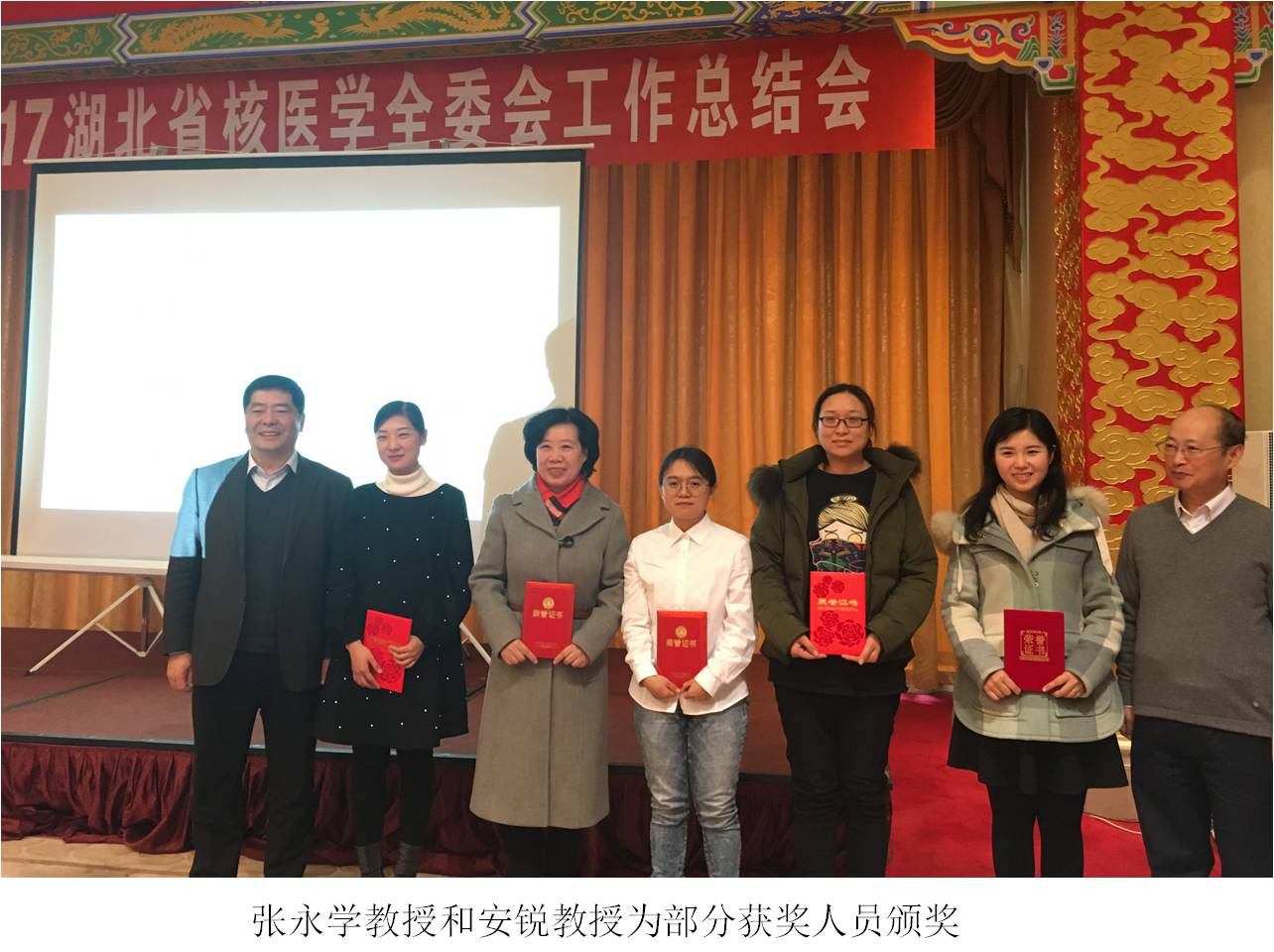 2017年我省有多位同仁在国内外各种比赛中获奖,3位技师分获十佳技师和十佳新锐技师奖,17人参加第二届全国核医学青年教师讲课比赛3人获三等奖,中心医院虞翌医生获“大好核山”演讲比赛一等奖等等。在此次的委员会上,由我省资深专家张永学教授和学会领导安锐教授再次为部分获奖人员颁奖,进一步鼓励了我省的核医学同仁努力奋进。在新的一年,我省将在继续坚持各项优良传统的基础上,积极响应中华核医学会的各项号召,大力支持青委会开展基层帮扶、继教培训、对外宣传、学术交流等工作,为推动我省核医学的普及发展不懈努力,更要借2018年全国核医学学术年会的东风,扩大我省核医学的影响力、提高学科整体水平。