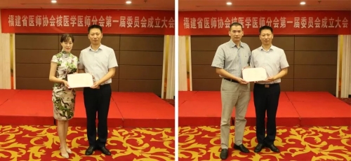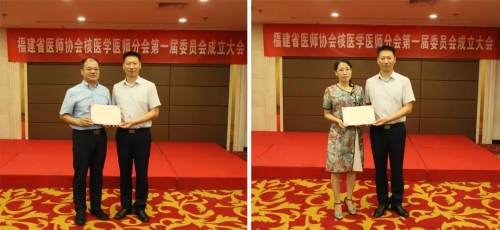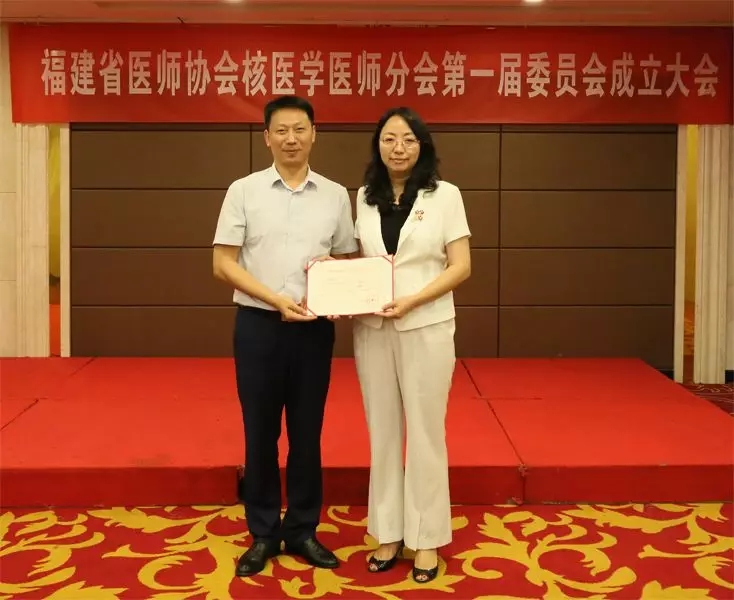 分会成立 福建省核医学医师分会成立,缪蔚冰教授当选首届主任委员 福建省医师协会核医学医师分会成立大会于2018年8月4日在福州召开,会议由福建省医师协会黄纯秘书长主持。 48名来自全省各地核医学专业的精英骨干当选为首届委员会委员。 随后召开全体委员会议,按章程无计名投票选出常委,并在常委会上选出副主任委员及主任委员。来自福建医科大学附属第一医院的缪蔚冰教授全票当选第一届委员会主任委员,福建省立医院陈文新主任、福建医科大学附属协和医院林天生主任、厦门大学附属中山医院苏新辉主任、福建省肿瘤医院林端瑜副主任全票当选为副主任委员。之后成立党小组。黄纯秘书长分别为主任委员、副主任委员颁发了证书。 福建省医师协会于2018年6月15日正式成立,核医学医师分会是第二个成立的专科分会,分会将秉承上级学会的指导,发挥行业指导、服务、自律、协调、监督的作用,并在规范医师执业活动、提高医师队伍素质、加强医师岗位管理及维护医师合法权益等方面发挥重要作用,进一步推动福建省核医学事业持续健康发展。 福建省医师协会核医学医师分会第一届委员会全体委员 福建省医师协会核医学医师分会第一届委员会常务委员 福建省医师协会黄纯秘书长为缪蔚冰主任委员颁发证书 陈文新副主任委员 、林天生副主任委员 苏新辉副主任委员 、 林端瑜副主任委员 福建省医师协会核医学医师分会第一届全体委员会议 附:福建省医师协会核医学医师分会第一届委员名单 主任委员 缪蔚冰 副主任委员 陈文新、林天生、苏新辉、林端瑜 常务委员(按姓氏拼音排序): 陈仰纯、高荣光、洪理伟、黄剑全、黄劲雄、林美福、刘佳、邱菊生、俞秀华、查金顺、赵春雷 委员(按姓氏拼音排序): 陈彩龙、陈金勇、陈冉冉、陈少明、陈芸、崔向军、葛冉、郏潜新、蒋韩、李瑞珍、林志毅、刘道佳、罗作明、潘香颖、苏应瑞、汤辉、汪永红、王凌云、王申、翁志成、杨家友、杨永东、张红、张杰平、张倩、张颖、赵龙、郑森兴、郑山、周建锋、周敏、周硕 秘书:张颖(兼)