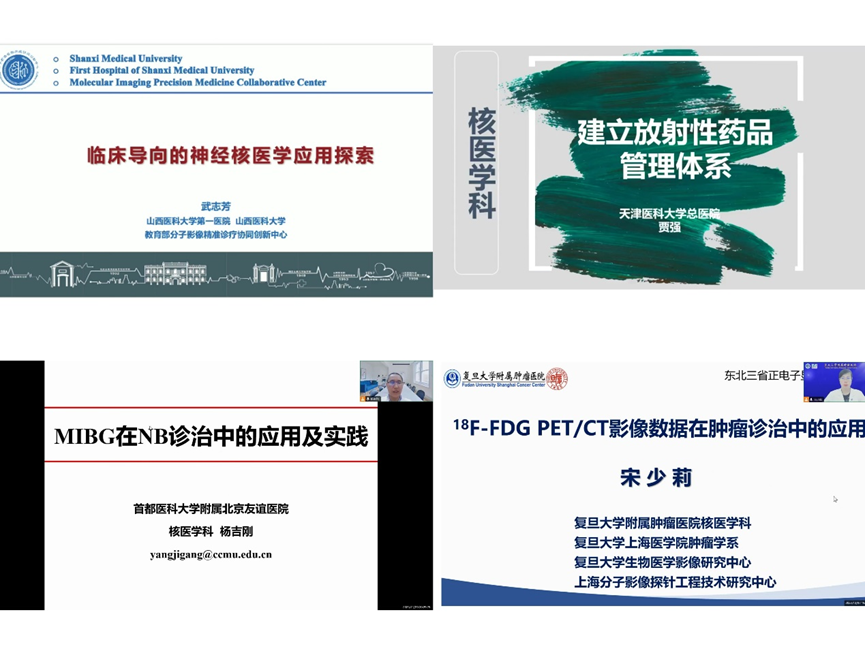为会议做学术报告的分别为:中华医学会核医学分会主任委员汪静教授的《核医学正国科金申报的体会与思考》、中华医学会核医学分会第十一届主任委员李思进教授的《核医学在精准诊疗中的重要作用及发展概况》、中国医师协会核医学医师分会会长安锐教授的《PET/MR复合型诊断医师的培养》、亚洲及大洋洲核医学与生物学联盟主席、中国医师协会核医学医师分会候任会长黄钢教授的《代谢分子影像探索肿瘤分子演进与干预治疗》、中华医学会核医学分会候任主任委员石洪成教授的《如何获得高质量PET影像—上海中山经验分享》、中国核学会核医学分会候任理事长赵长久教授的《从技术创新驱动诊疗模式创新》、中国核学会核医学分会副理事长兰晓莉教授的《核素诊疗一体化的机遇与挑战》、中国医师协会核医学医师分会常务委员武志芳教授的《神经核医学的应用探索》、中华医学会核医学分会常务委员贾强教授的《建立医院放射性药品管理体系》、中国医师协会核医学医师分会常务委员杨吉刚教授的《MIBG在NB诊治中的应用及实践》、中华医学会核医学分会肿瘤影像学组副组长宋少莉教授《18F-FDG PET/CT影像数据在肿瘤诊治中的应用》、吉林大学一院核医学科主任林承赫教授的《PET-CT在痴呆诊断中应用》和中国影像技术分会青年委员陈滨教授的《PSMA靶向分子影像在前列腺癌的临床应用》。报告主持人分别由吉林大学一院核医学科主任林承赫教授、中华医学会核医学分会常务委员李雪娜教授、黑龙江省医学会核医学分会主任委员、黑龙江省核学会核医学分会主委付鹏教授、黑龙江省核学会副秘书长栾厦教授、中国医科大学附属盛京医院核医学科主任辛军教授、大连医科大学附属第二医院核医学科主任于璟教授和大连医科大学附属第一医院核医学科主任杜雪梅教授等19位专家学者主持与点评。来自东北三省及全国其他区域医院的核医学同仁通过线上和线下多种方式参与入会,深感收获满满,深受启发,对做好科研、临床工作颇有指导意义。