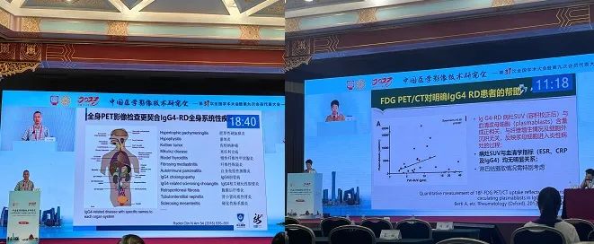 本次大会宗旨是IgG4疾病的诊治,6月17日中华医学会核医学分会侯任主委石洪成教授、霍力教授分别做了“18F-FDG PET显像在IgG4疾病诊断评估价值”及“核医学分子影像在IgG4疾病的临床诊疗应用”的讲座,重申了核医学在该病诊疗中的重要价值,得到了参会代表的一致认可。