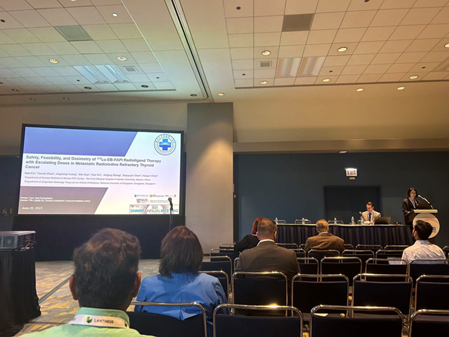 厦门大学第一附属医院核医学科付浩医师的研究入围了Center for Therapy Excellence Young Investigator Award。该研究题目为“Safety, Feasibility, and Dosimetry of 177Lu-EB-FAPI Radioligand Therapy with Escalating Doses in Metastatic Radioiodine Refractory Thyroid Cancer”(指导老师:陈皓鋆、张静静、陈小元),报道了177Lu-FAPI放射配体治疗剂量在转移性放射性碘难治性甲状腺癌的安全性、可行性和剂量学研究,177Lu-FAPI放射配体治疗为TKI进展后的转移性碘难治甲癌患者提供了新的治疗策略。