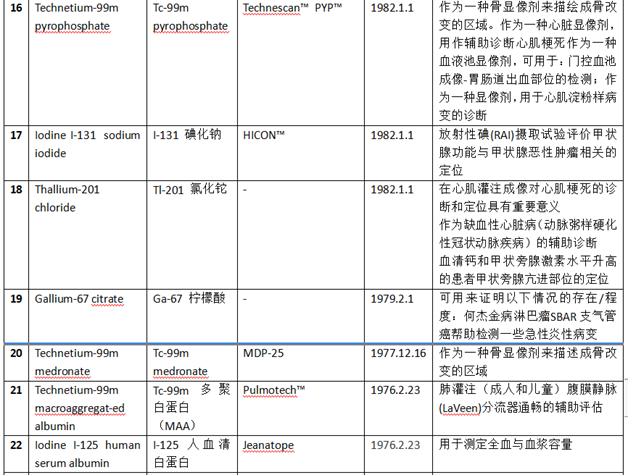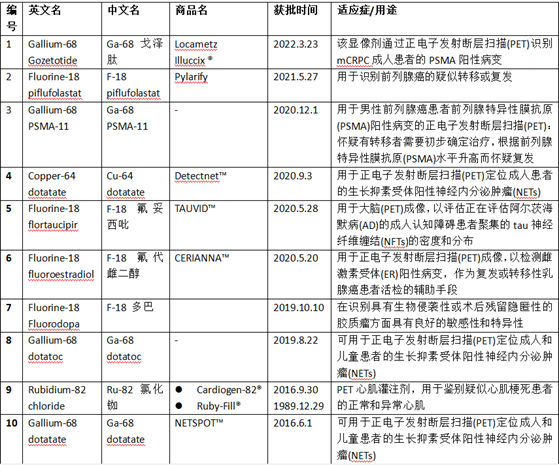 FDA批准放射性药物列表