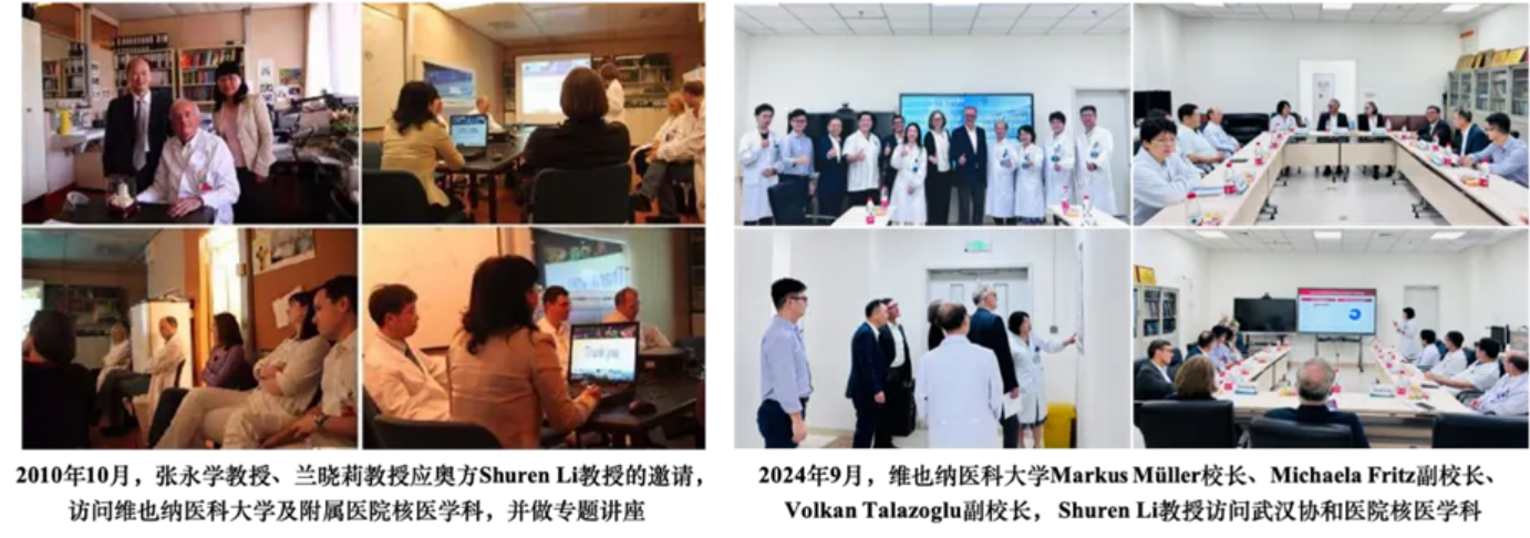 华中科技大学同济医学院附属协和医院核医学科与维也纳医科大学的合作由来已久。2010年,张永学教授和兰晓莉教授曾应邀赴该校进行专题学术交流,双方围绕核医学技术的创新发展展开深入探讨。经过十余年的合作,双方在学术交流、科研协作及人才培养等方面建立了坚实的合作基础。2024年9月,维也纳医科大学校长Markus Müller教授率团访问华中科技大学同济医学院附属协和医院,进一步拓展了双方在医学教育、科研创新和临床应用等领域的合作空间。