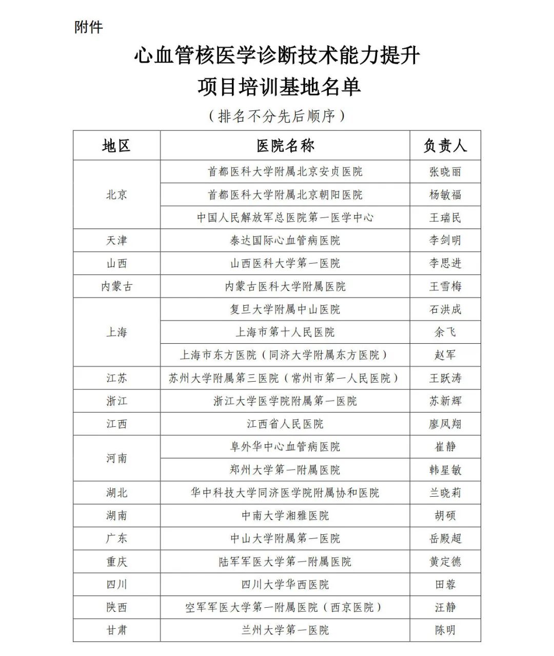 附件:心血管核医学诊断技术能力提升项目培训基地名