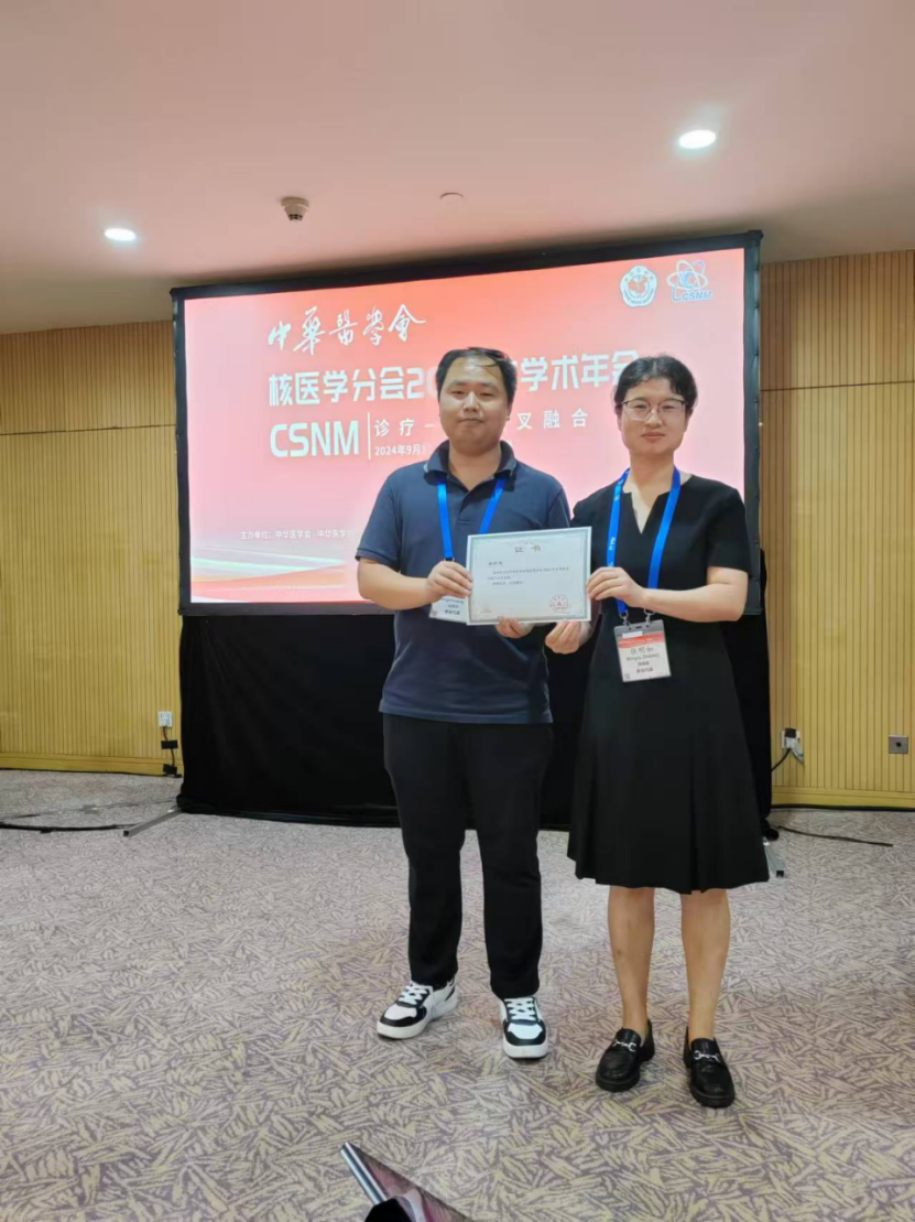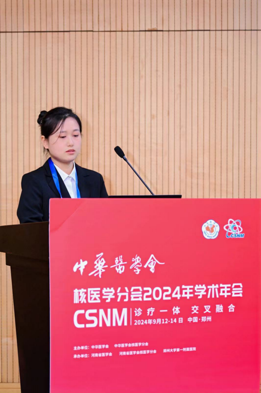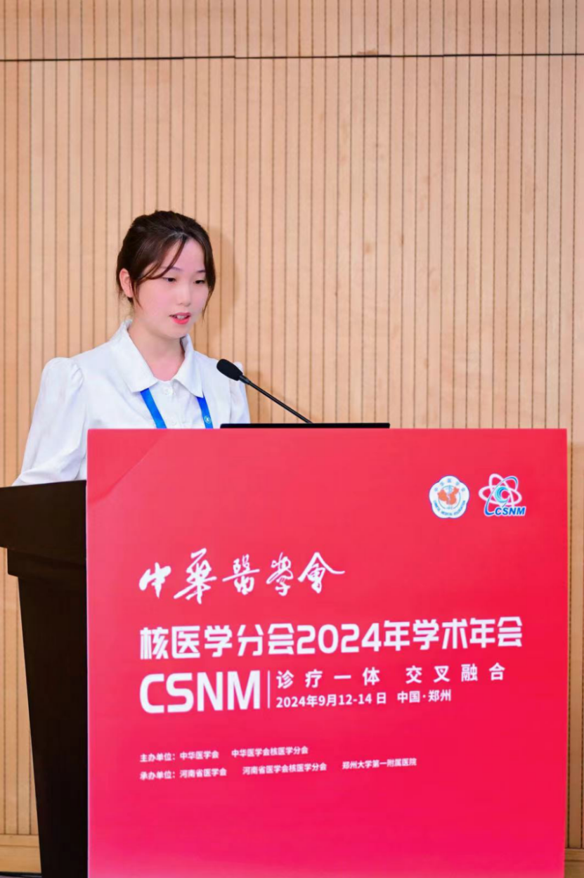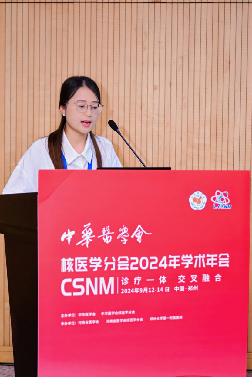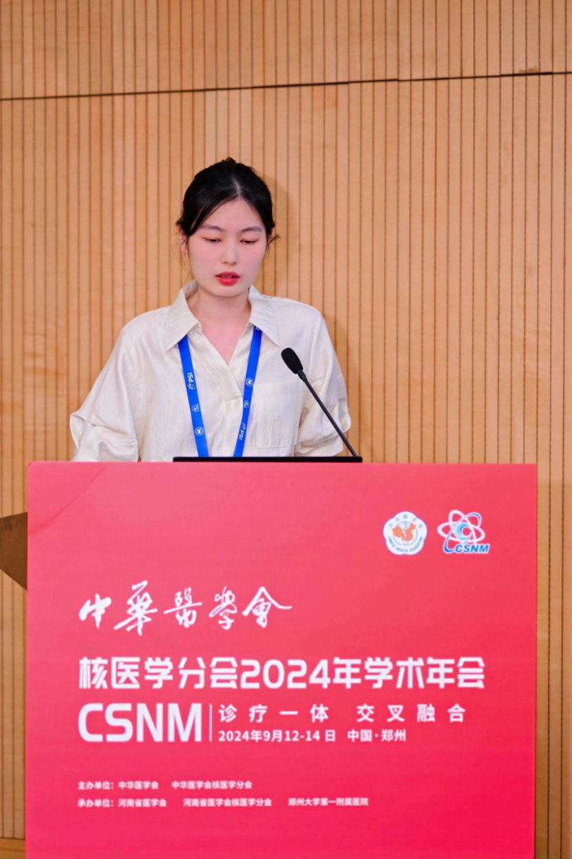 会议上还进行了精彩的论文交流,由西京医院张明如教授和中山大学附属第五医院李丹教授主持。放射性药物研发与转化分会场共征集论文216篇,秉承“优中选优”的原则共筛选了10篇优秀论文进行汇报交流,内容涵盖生物正交策略、放射性药物研发及临床转化等多个方面,既有经典的碳酸酐酶Ⅸ、PSMA、FAP、FGFR等经典靶点药物的开发及临床转化,也有GUCY2C、MerTK、GPC3和CD146等较新靶点药物的开发。充分体现了青年学者对于放射性药物研发及临床转化的热爱和创新思维能力。