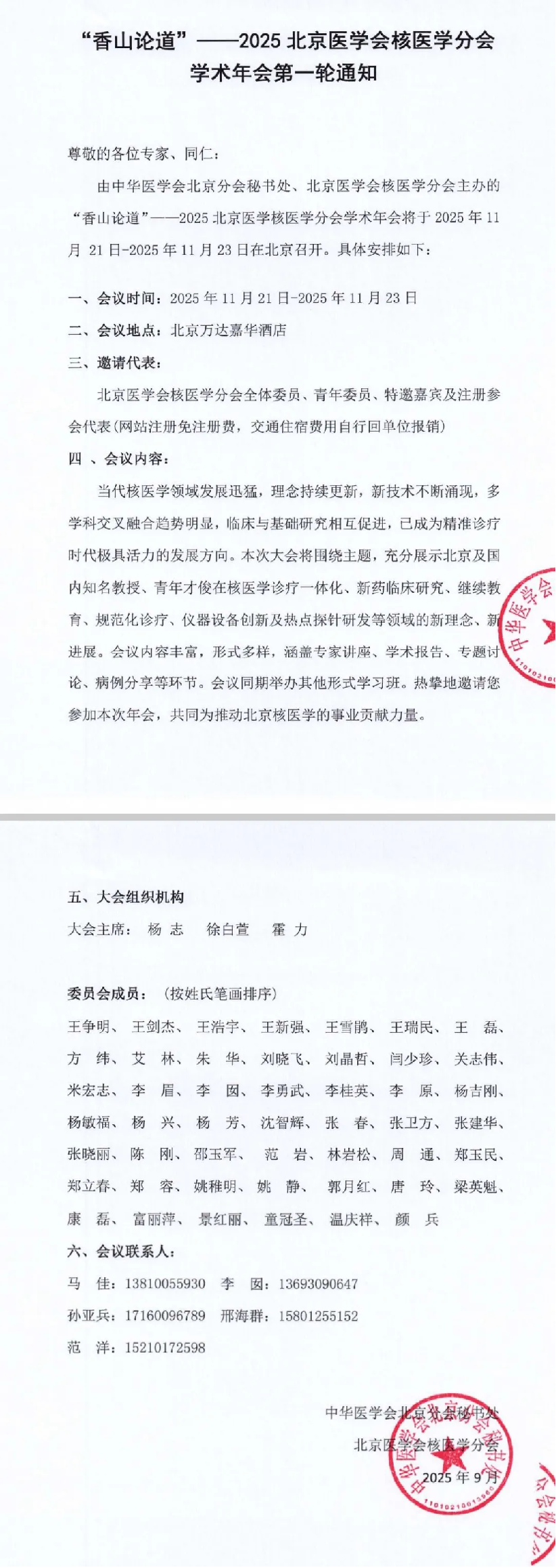 2025 北京医学会核医学分会学术年会通知(第一轮)
