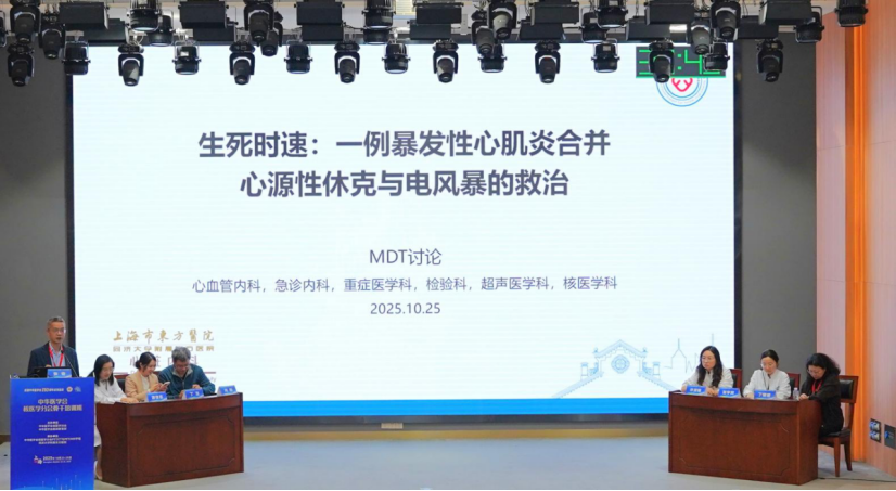 25日下午,复旦大学附属肿瘤医院宋少莉教授带来了《临床导向的肿瘤核医学探针的研发与转化》的报告,重点介绍了复旦肿瘤创新研发基于FAP的分子探针在提高肿瘤诊断准确性方面的巨大潜力与优势。同济大学附属东方医院赵军教授分享了《PET/MR在心血管疾病中的应用经验》,展现了PET/MR在心血管疾病中的应用优势和潜力。厦门大学附属第一医院孙龙教授讲解了《PET引导下穿刺活检应用》,介入核医学是沟通PET分子影像与肿瘤病理学的桥梁,为临床精准治疗提供科学依据。北京协和医院罗亚平教授分享了《PET/CT疑难病案临床诊断思维》,通过多个精彩案例与大家分享了其诊断、鉴别诊断及报告描述细节,需要把报告当成科研论文去写,核医学影像诊断思维要有全局观,认真细致阅片,好的核医学影像诊断医生应该是“全科医生”。最后由同济大学附属东方医院心血管内科张奇教授MDT团队展示了《生死时速:一例暴发性心肌炎合并心源性休克与电风暴的救治》,由心血管内科、急诊内科、重症医学科、检验科、超声医学科、核医学科共同参与,MDT讨论将培训班学习的热情推向高潮。