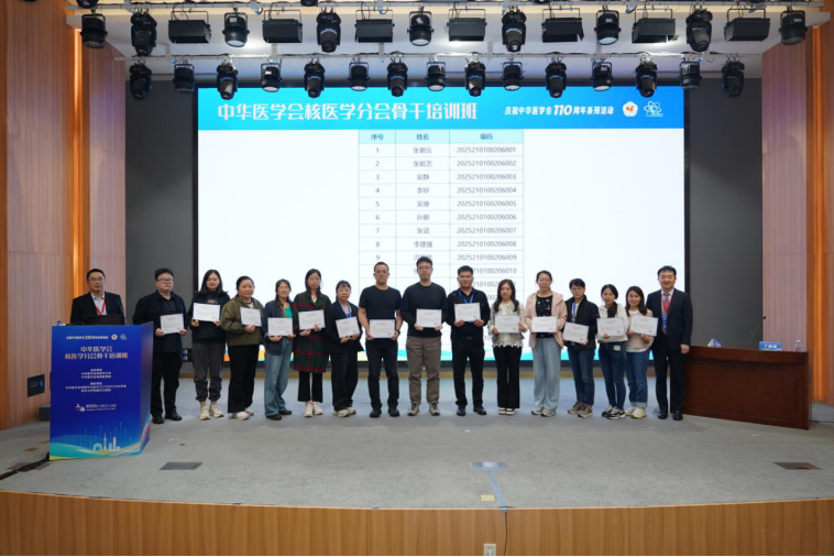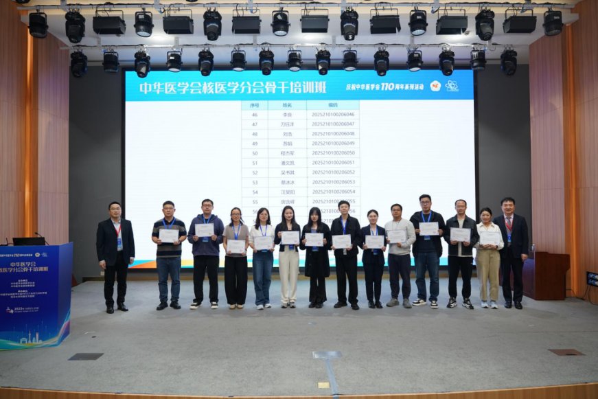 培训尾声,组织了结业考核,学员扫码独立答题,对合格学员颁发证书。结业仪式上首先邀请来自华中科技大学同济医学院附属协和医院夏晓天教授作为学员代表交流培训体会,最后赵军教授对培训班进行了简短总结并致谢为培训班顺利进行付出辛勤汗水的每一位专家、学员和朋友,祝各位学员学有所获、返程顺利、事业进步、友情长存。本期骨干培训班的成功举办是在汪静主委的具体指导下完成,相信将为我国核医学高层次人才培养注入了新的动力,夯实核医学根基,有力推动PET/CT与PET/MR分子影像技术的规范化应用与高质量发展,为服务“健康中国”战略贡献力量。