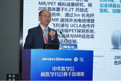 培训班授课内容精彩纷呈,学员学习热情高涨,学习氛围浓厚。10月24日上午,空军军医大学西京医院汪静教授以《核医学学科建设与人才培养》为题,深刻剖析了当前核医学学科建设面临的诸多挑战,如行政审批、人才缺乏、设备数量不足、放射性药品零差价政策、核医学收费过低、宣传普及不够等,并强调学科带头人是学科发展的关键,引进人才、科研临床融合及建立强大团队对学科发展的重要性。上海交通大学附属仁济医院黄钢教授《核医学诊疗一体现状与未来发展》的报告指出核医学学科范式已跃迁,从“诊断”到“治疗”的无缝衔接,诊疗一体新模式的涌现,强调了人才培养与技术进步的核心驱动作用,积极开展多中心临床研究。未来核医学将聚焦于诊疗一体化、精准治疗与科学研究的深度融合,并积极探索数字孪生等前沿诊疗模式,呼吁同仁加强合作,共同推动核医学向科学化、个性化、高效化迈进。复旦大学附属中山医院石洪成教授分享了《FDG/FAPI 双探针一日法 PET显像方案实施及应用》,介绍了通过优化流程和一站式双示踪剂应用,在肿瘤尤其是淋巴结和远处转移检测中提高诊断效率与精确度的宝贵经验。华中科技大学同济医学院附属协和医院张永学教授在《PET/MR概论》中,系统回顾了PET/MR多模态设备的发展历程,突出了国产设备的崛起为医疗领域带来的更多选择,并分享了武汉协和医院PET/MR临床应用8年来的丰富经验,PET/MR是PET/CT的重要补充,优势互补,PET/MR对儿童更安全,对心脏和神经系统更优越,可取代PET/CT。北京协和医院李方教授则结合其三十年的丰富经验,分享了《北京协和医院嗜铬细胞瘤与副神经瘤PET临床转化研究实践经验》,通过MIBG和奥曲肽应用的生动案例,展示了北京协和医院在神经内分泌肿瘤诊疗领域的持续创新与卓越贡献。中山大学肿瘤防治中心樊卫教授的报告则深入探讨了癌症诊断与治疗领域的前沿医学概念,内容涵盖淋巴瘤、鼻咽癌的生物学特征,以及免疫治疗、代谢分析和影像技术的前沿应用,强调了不同癌症类型在诊断和治疗策略上的差异性。