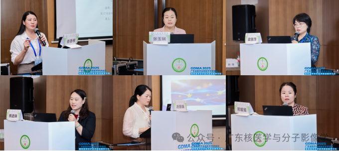 护理学组会场中,暨南大学附属第一医院骆春柳护士长分享了《核医学护理质量控制与管理》;南方医科大学珠江医院核医学科张玉娴护士长带来了《碘131治疗分化型甲状腺癌患者护理规范与辐射防护》;中山大学附属第七医院刑媛媛老师汇报了《一例阿尔茨海默病合并帕金森综合征患者PET/CT检查全程管理的护理实践》;中山大学附属肿瘤医院核医学科梁丽萍老师分享了《177Lu-PSMA-617临床研究受试者住院治疗期间的辐射防护护理》;暨南大学附属第一医院熊进妹老师介绍了《钇90微球分装操作与防护护理》;广州市第一人民医院高沙医院汤丽娟老师汇报了《风险防范护理干预对分化型甲癌术后131I治疗患者隔离期间并发症的预防效果研究》。中山大学孙逸仙医院核医学科黄薇护士长、东莞市人民医院核医学科冯秀娥护理组长、中山大学附属第三医院核医学科袁海娟护士长、中山大学附属第七医院核医学科邢媛媛护士长、深圳市人民医院核医学科周敏护理组长、江门市中心医院吴月娥护理组长、南方医科大学南方医院陈莉老师分别担任点评嘉宾。广东省人民医院核医学科王淑侠教授、佛山市第一人民医院核医学科苏少弟副主任护师分别担任主持。广东省人民医院核医学科王淑侠教授做总结发言。