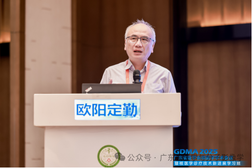 接着,中华医学会核医学分会副主任委员、上海交通大学医学院附属新华医院王辉教授、中国医师协会核医学医师分会副会长、海军军医大学第一附属医院核医学科主任左长京教授、南方医科大学珠江医院欧阳伟教授、暨南大学附属第一医院徐浩教授、香港核子医学及分子影像学会郭星翰教授、赵嘉麟教授、澳门大学莫昇萍教授、澳门理工大学黄秋教授、北京大学深圳医院赵永胜教授分别带来题为《中国PET三十年之思考》、《基于AI的PET影像在腹盆腔病变诊疗中的应用》、《DTC临床研究试验经验分享》、《广东省核医学专业住院医师规培现状与思考》、《神经退行性疾病-核医学图像生物标志物应用和发展》、《核医学在冠脉综合征中作用与进展》、《人工智能于核素脑图像的应用研究》、《基于深度学习的快速动态PET/CT成像》、《类器官在甲状腺癌诊疗中的应用》的专题报告。教授们结合自身的临床和实践工作等经验,讲述了湾区核医学的发展现状,分享了核医学影像技术的研究进展,展望了核医学学科的发展前景,对湾区核医学的未来进行了深入的思考。中山大学附属第七医院核医学科主任蒋宁一教授、广州全景医学影像诊断中心院长兼核医学部主任陈萍教授、南方医科大学南方医院王全师教授、广州医科大学附属第二医院林伟教授、中山大学附属肿瘤医院核医学科主任樊卫教授、广东高尚医学影像诊断中心主任尹吉林教授、广东省人民医院核医学科王淑侠教授、中山大学附属第一医院核医学科主任张祥松教授、中山大学附属第三医院核医学科主任程木华教授、澳门镜湖医院影像中心余国威教授、中山大学孙逸仙纪念医院核医学科刘生教授、广州市第一人民医院核医学科邹德怀教授、澳门科技学院高洁欣教授、南方医科大学南方医院核医学科主任吴湖炳教授、香港核医学及分子影像学会原会长欧阳定勤顾问医生、佛山市第一人民医院核医学科主任冯彦林教授、香港核医学及分子影像学会刘燕曦教授、深圳市第二人民医院黄铁军教授、深圳前海泰康医院武兆忠教授、南方医科大学珠江医院冯会娟教授分别担任主持。张金山教授、黄晓红教授、黄斌豪教授、许杰华教授、黄朝华教授、王东教授、刘欣教授、袁建伟教授担任点评嘉宾。南方医科大学珠江医院欧阳伟教授对大会作了最终总结。
