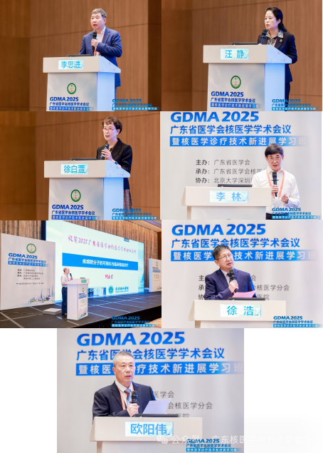 会议开幕式上,北京大学深圳医院黎杰运书记、深圳市医学会葛宏伟副秘书长、广东省辐射防护协会孔令丰会长、中华医学会核医学分会主任委员汪静教授、广东省医学会刘筱燕副秘书长分别致辞,肯定了2025年核医学分会在工作上取得的优异成绩,感谢为广东省核医学发展做贡献的各位专家、教授们,并且表达了对核医学分会未来发展的殷切希望,同时预祝会议取得圆满成功。