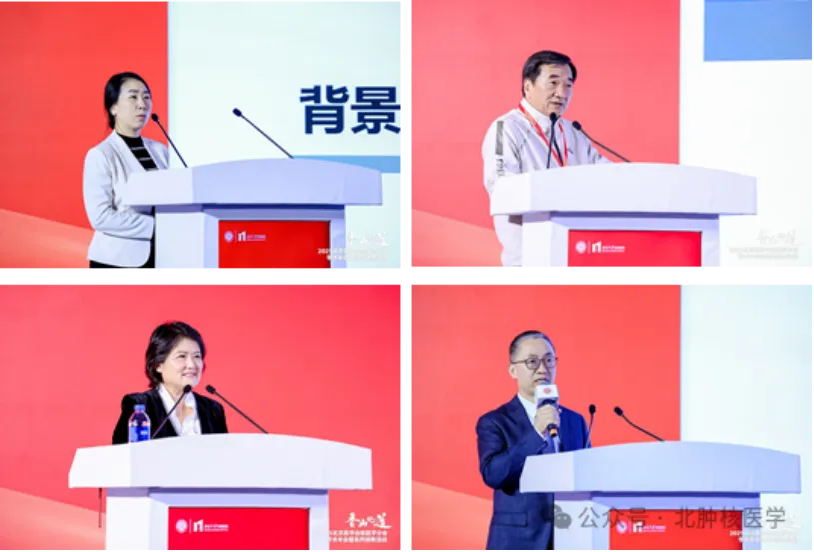 会议开幕式由北京大学肿瘤医院核医学科副主任李囡教授主持。开幕式特邀嘉宾致辞环节由北京大学肿瘤医院院长李子禹教授,中华医学会核医学分会主任委员汪静教授,中国医师协会核医学医师分会会长黄钢教授,中国核学会核医学分会理事长李亚明教授,中国医学装备协会核医学装备与技术专业委员会主任委员李方教授分别致辞。嘉宾们充分肯定了本次会议在推动核医学与肿瘤临床融合中的重要作用,并强调多学科协作与技术创新在提升肿瘤诊疗水平中的核心价值。