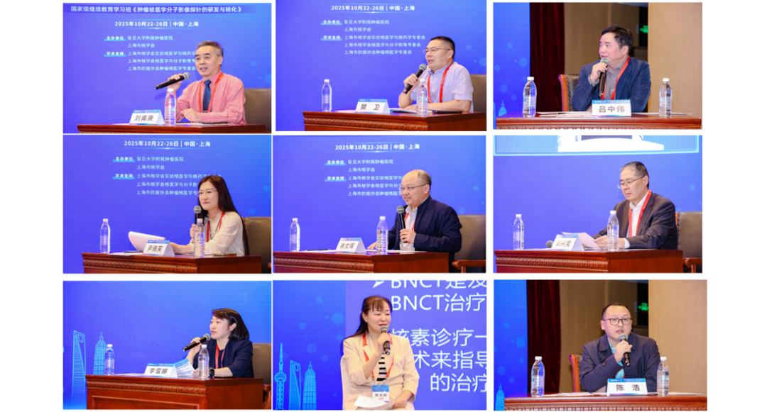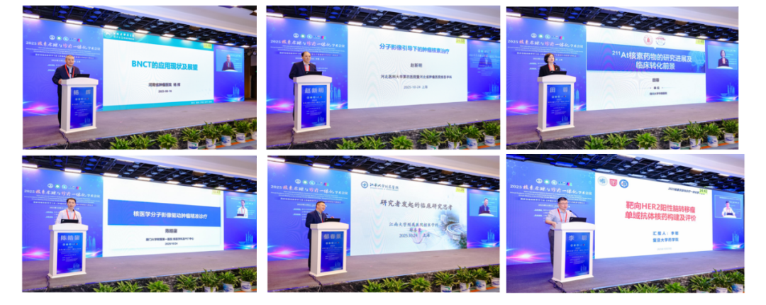 谭蔚泓院士以“肿瘤诊疗的分子医学”为题分享他和团队在核酸适体领域研究的诸多成果,为早期、更准确地诊治肿瘤提供了新手段。团队为化疗药物装上分子靶头、引导药物精准直击癌细胞,降低化疗的毒副作用;及在三阴性乳腺癌的分子诊治方面正在开展的全国多中心临床试验,成果令人振奋。中国医师协会黄钢会长高瞻远瞩地阐述了核药靶向治疗面临的黄金机遇与战略思考,为核素诊疗一体化指明了正确的方向。中华医学会核医学分会主任委员汪静教授系统梳理了我国核医学诊疗一体化的发展脉络与实践成果,令人欣喜。中华医学会核医学分会候任主任委员石洪成教授则以中山医院核医学科的变迁为缩影,生动展现了中国核医学的奋进历程。清华大学临床医学院何作祥教授深入探讨了多学科协作在推动钇90微球治疗规范化应用中的核心价值。北京协和医院霍力教授讲述了核医学在小细胞肺癌的精准诊疗中的价值,让人看到“硬核”核医学的临床价值。河南省肿瘤医院杨辉教授分析了BNCT技术的应用现状与未来挑战,前沿进展耳目一新。河北省肿瘤医院赵新明教授展示了分子影像引导下核素治疗的精准化探索。四川大学华西医院田蓉教授系统介绍了At-211核素药物的独特优势与转化前景。厦门大学附属第一医院陈皓鋆教授强调了“诊断与治疗并重”的学科特点,展示了其团队从靶向显像到诊疗一体化的系列成果。江南大学附属医院郁春景教授则分享了开展研究者发起临床研究的宝贵心得与经验。复旦大学药学院李聪教授的报告《靶向HER2阳性脑转移瘤单域抗体核药构建及评价》则展现了核药研发前沿的创新活力。以上高屋建瓴的学术报告展示出核医学精准诊疗时代已经来临,并已全面进入精准的分子诊疗新时代。