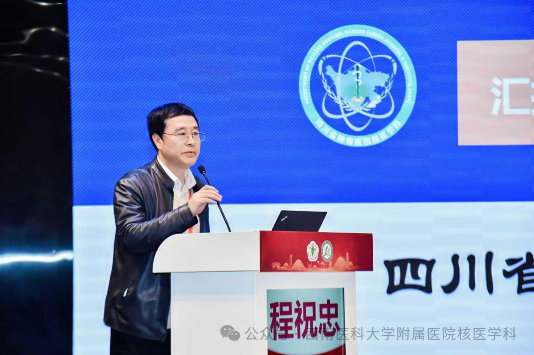 随后,在四川省医学会核医学分会候任主任委员、四川大学华西医院黄蕤教授主持下,开幕式隆重举行,陈跃教授、徐白萱教授、刘世伟院长、杨永钊先生分别致辞,祝贺大会开幕。