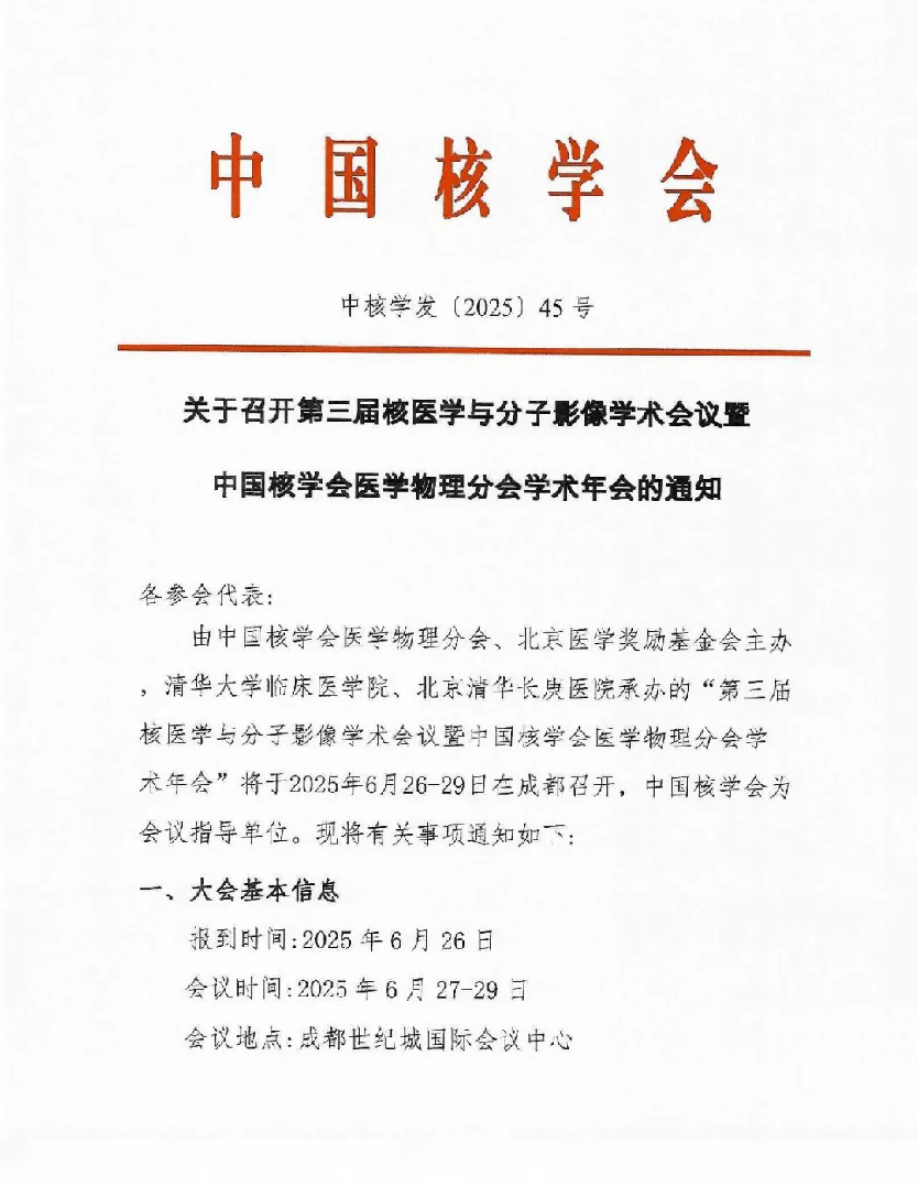 第三届核医学与分子影像学术会议暨中国核学会医学物理分会学术年会通知