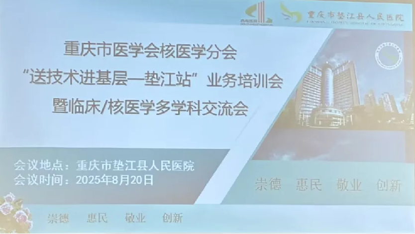 为深入贯彻落实国家关于提升基层医疗服务能力的政策要求,加强基层医务人员对肾动态显像的认识,促进核医学科与临床的有效沟通,2025年8月20日下午,重庆市医学会核医学分会主任委员黄定德教授组织肾脏病学和核医学专家团队赴垫江县人民医院开展“学术进基层——肾动态显像的临床应用推广”多学科学术交流活动。在肾脏内科会议室,来自垫江县人民医院、荣昌区人民医院、开州区人民医院、云阳县人民医院、合川区人民医院、忠县人民医院等多家医疗机构的60余名从事肾脏内科、泌尿外科、核医学科的相关专业人员参与。