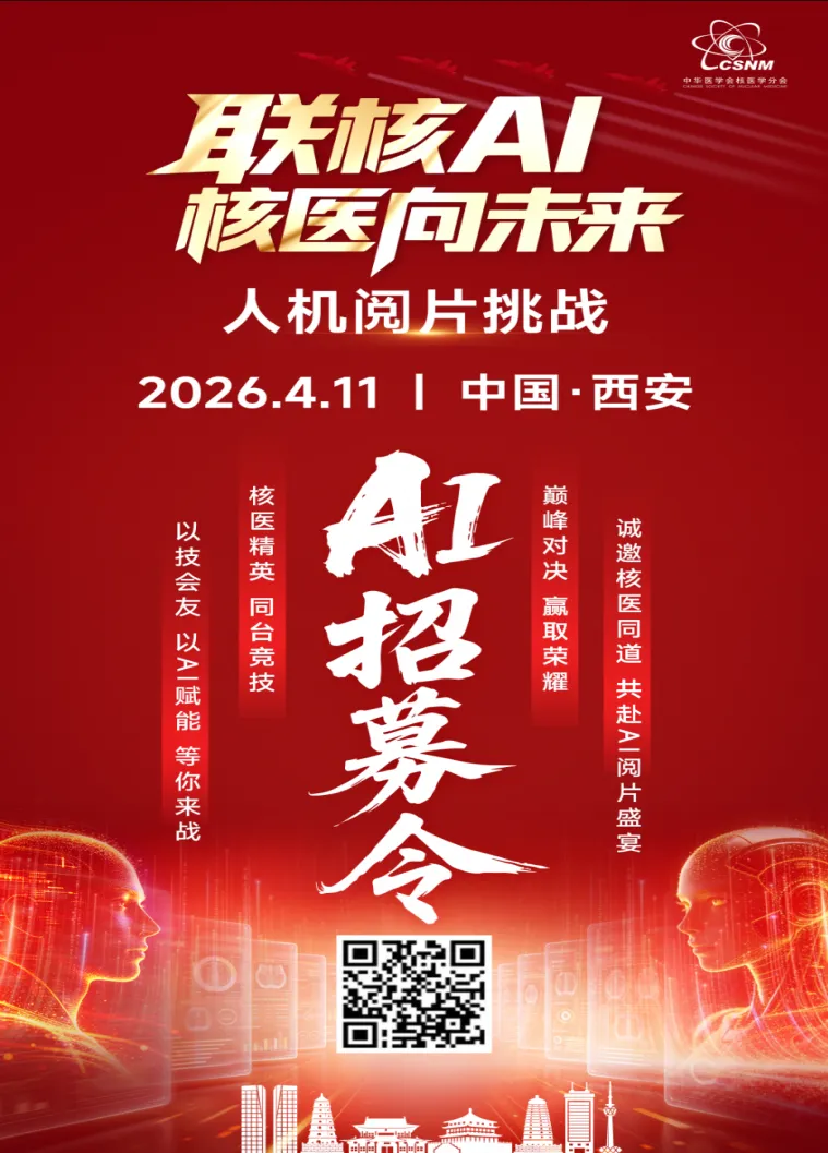 4月11日,西安集结,人机巅峰对决,以技会友、以AI赋能,诚邀您一同见证,扫码注册参会,共赴核医新未来!