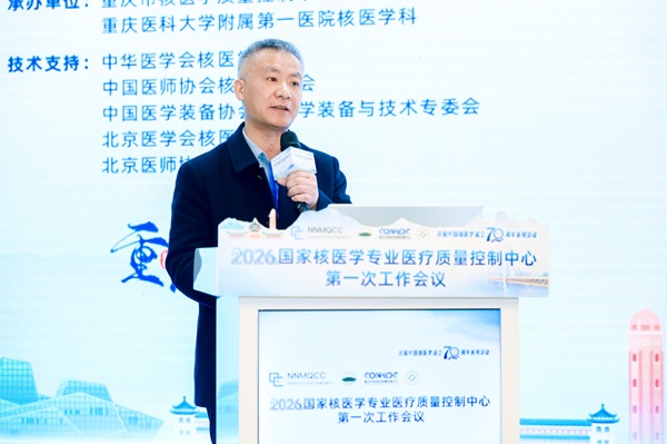 国家核医学专业质控中心主任霍力教授在致辞中首先总结到国家核医学质控中心已成立五年。截止2025年底,全国设立的省级质控中心已增至27个。此外,市级质控中心的数量已达到114个,区县级质控中心也有21个。接着提出了2026年度国家核医学质控中心工作计划,即推动区域检查检验结果互认、持续开展“向错误学习”、年度目标“体外分析的室间质评的参加率”、加强八项质控指标学习和落实、单病种规范培训、质控信息化建设和持续开展实地调研工作七项内容。